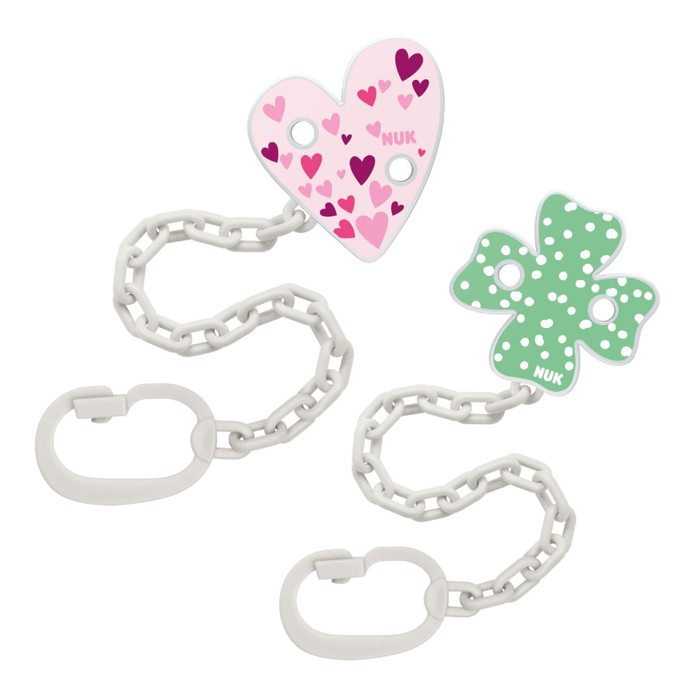 Além das chupetas, NUK apresenta fita e corrente para as chupetas, para que estas estejam sempre à mão do bebé.